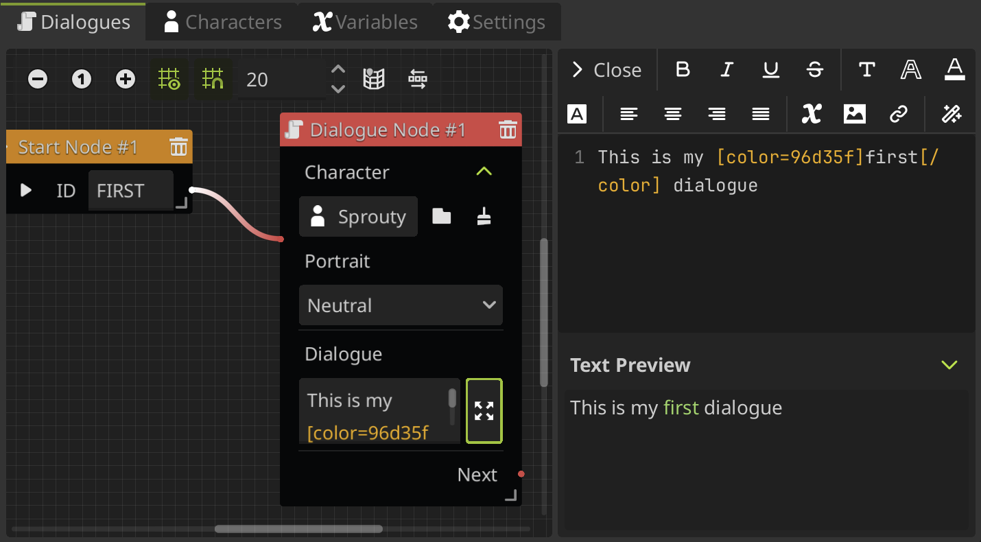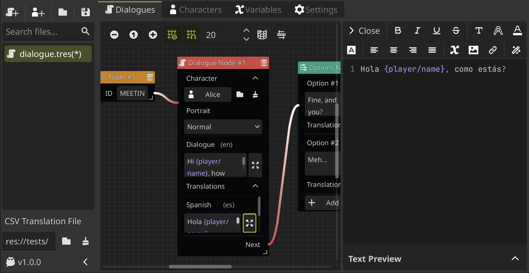Also, you can create and manage variables in the variable editor to change the dialogue flow, make conditions, and more!